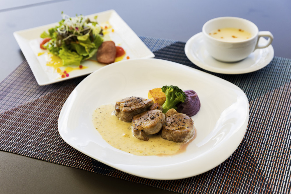 道の駅おおぎみ やんばるの森ビジターセンター内にある絶景が望めるレストラン。地産地消をテーマに、地域の食材をふんだんに使用したメニューが楽しめます!