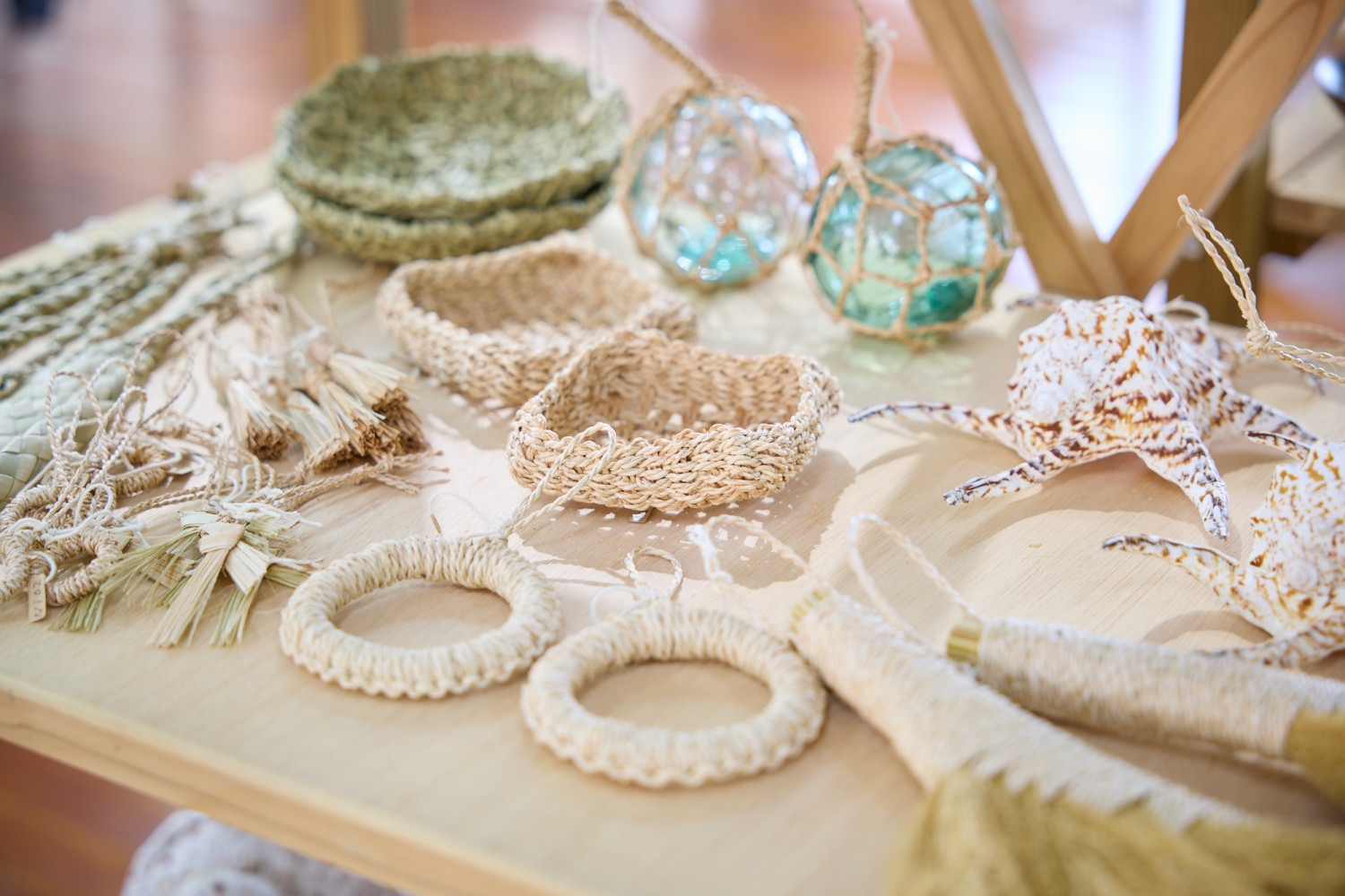 やんばる地域で活躍する作家や工房を中心に集まった「クラフト部門」エリア。ここでは、やちむんや、木工、ガラス作品に、アクセサリーなど、多岐にわたる県内のクラフト作品が展示・販売され、作り手の想いに直接触れることができます。購入の前に、作品に込められたストーリーや背景をスタッフさんが丁寧に説明してくれるのも嬉しいポイント。