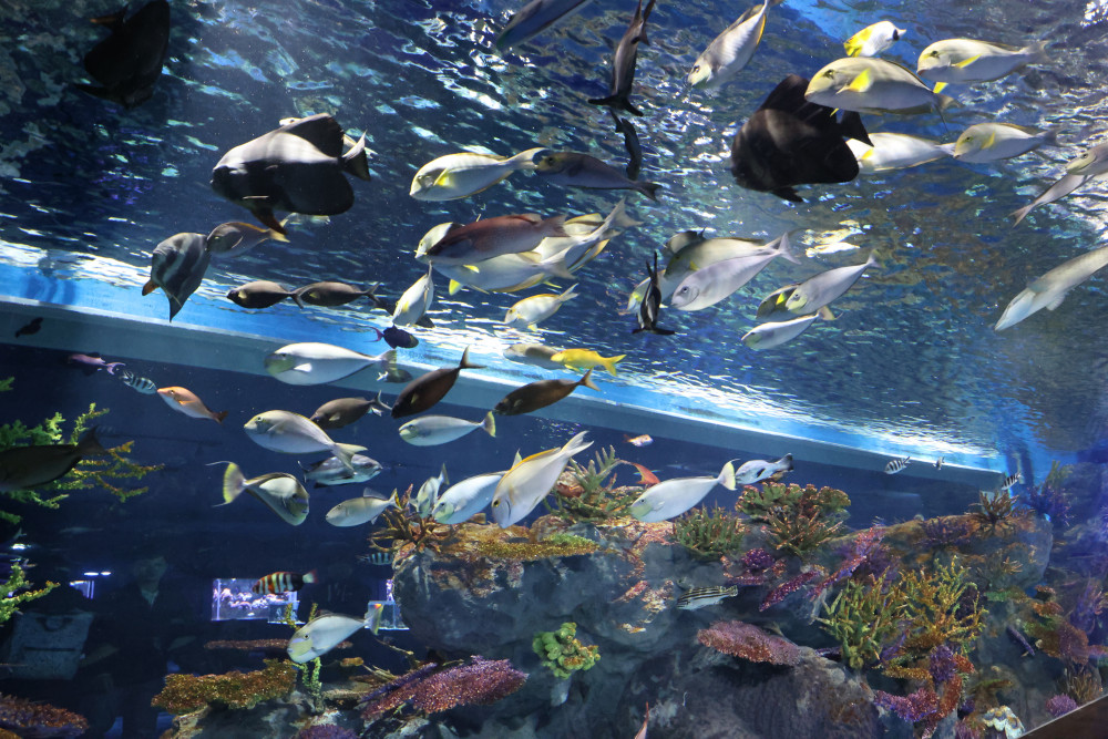 つづいて、那覇空港までは車で約20分の場所に位置する「DMMかりゆし水族館」へ。大型ショッピングセンター「イーアス沖縄豊崎」の中にあり、アクセス抜群です。