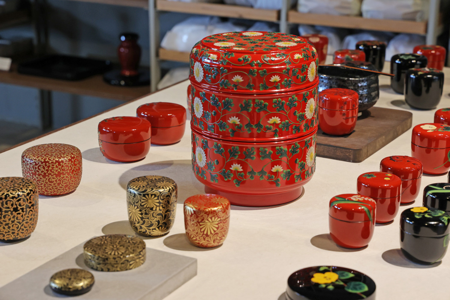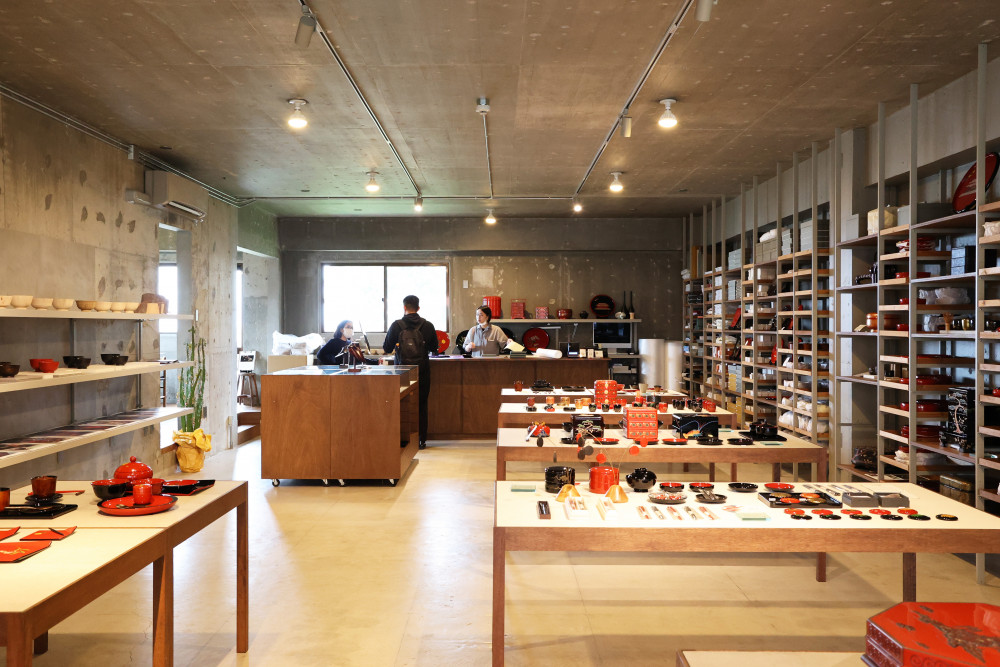 まずお店の空間からモダン。漆器や伝統工芸というイメージを覆すとてもおしゃれでシックな内装で、赤や黒の漆器一つひとつの美しさが際立ちます。