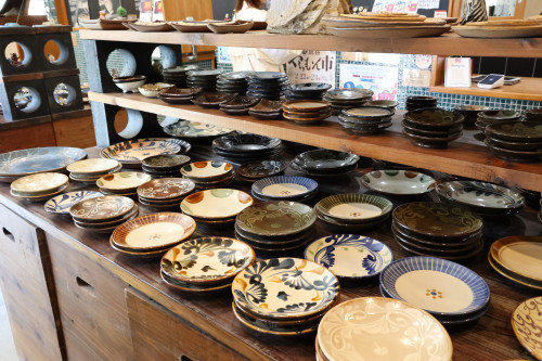 併設のショップには、見学した器の完成品がずらり。手に取れば、素朴ながらも力強く、やちむん特有の温かみを感じます。普段使いしやすいものばかりで、あれもこれも欲しくなりますが、悩みに悩み抜いて数枚購入。