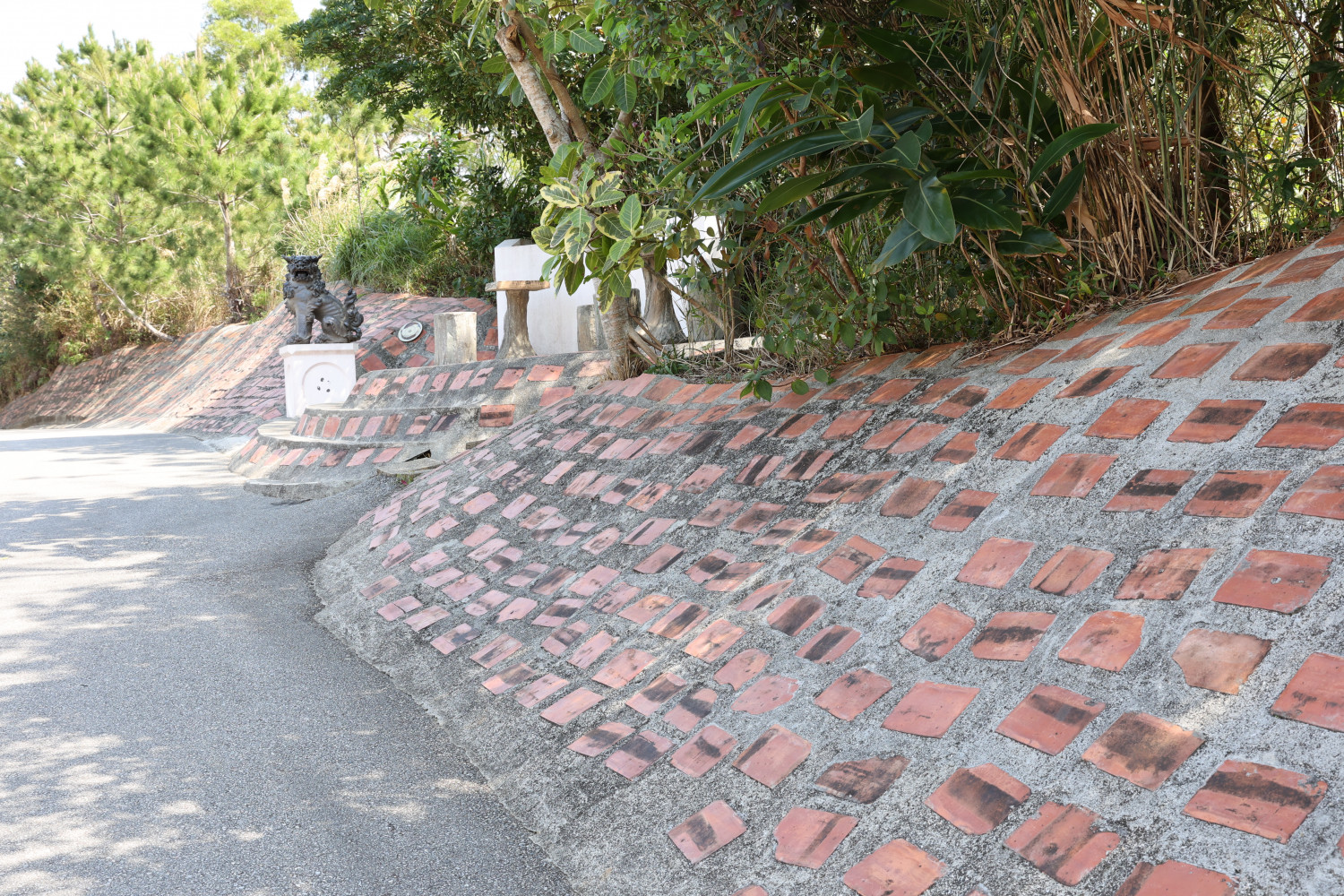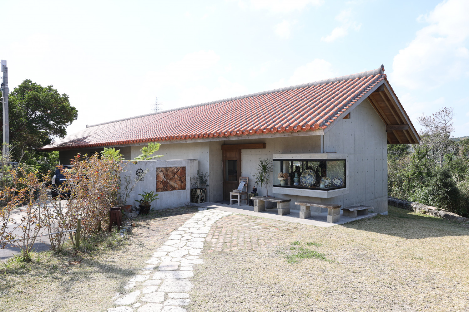 やちむんの里を歩くと、シンボルである沖縄らしい赤瓦の登り窯を中心に、工房や売店があちこちに点在しています。緑溢れる環境で、制作途中の器がずらりと天日干しされている光景や、あちこちに佇むシーサーなどを見ているだけで、幸せを感じます。こののんびりとした空気感も作品の大らかさに影響を与えているようです。