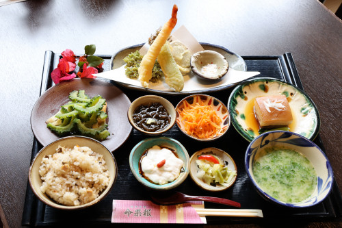 国際通り近くの「壺屋やちむん通り」にある琉球料理店。数々のメニューがある中、沖縄定番の郷土料理が一つの御膳になった、「ぬちがふう御膳」をいただきます。