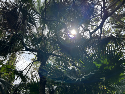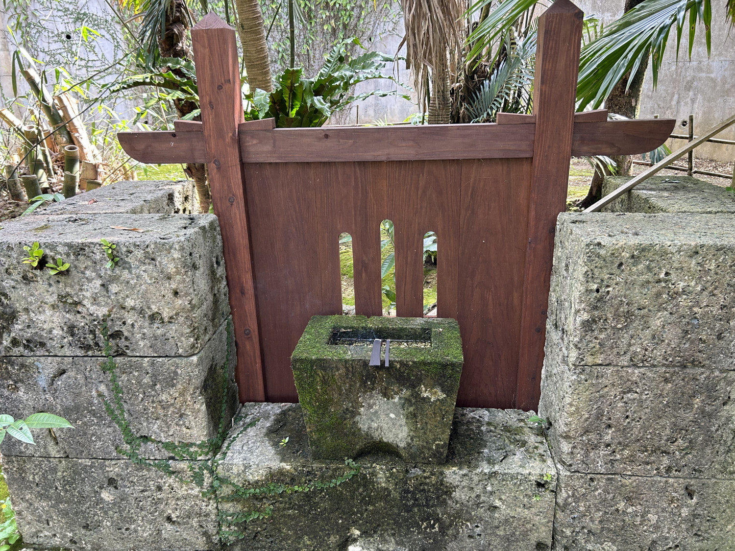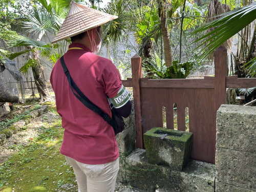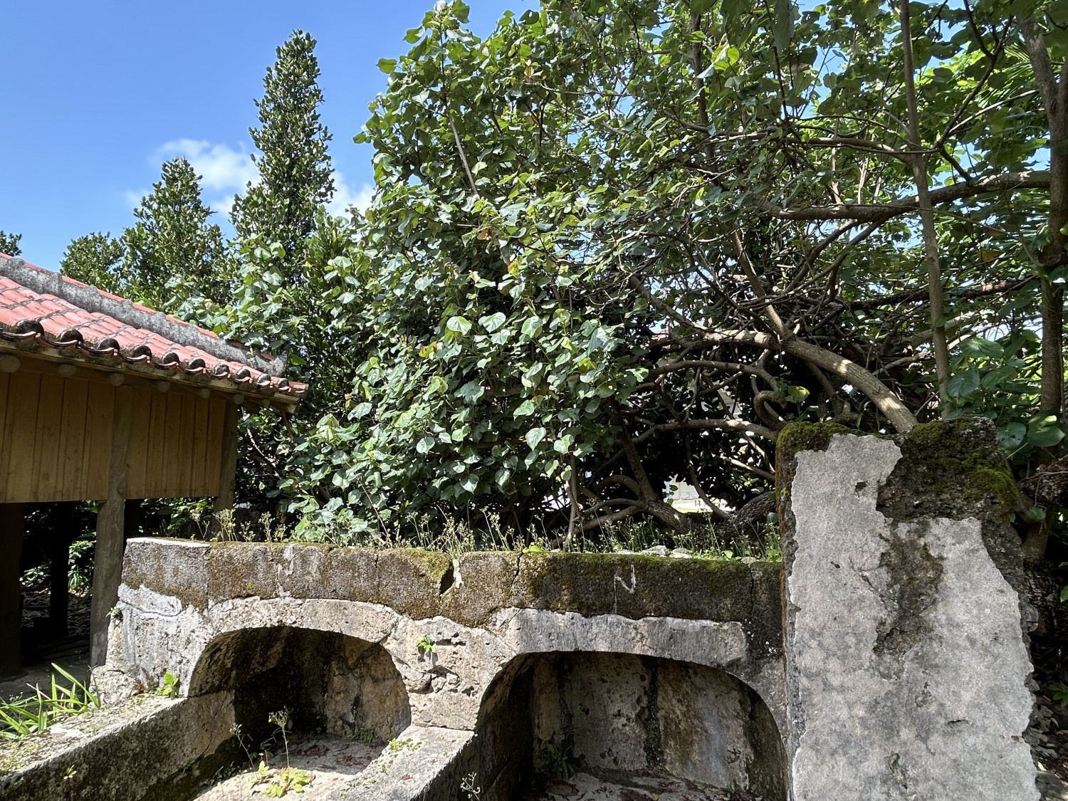 この御嶽(うたき)、本物ではありませんが、神が宿るとされているクバの木が数多く植えられています。東さんに祈りの仕方を教わって、静かに手を合わせると、不思議と心が穏やかになる気がしました。