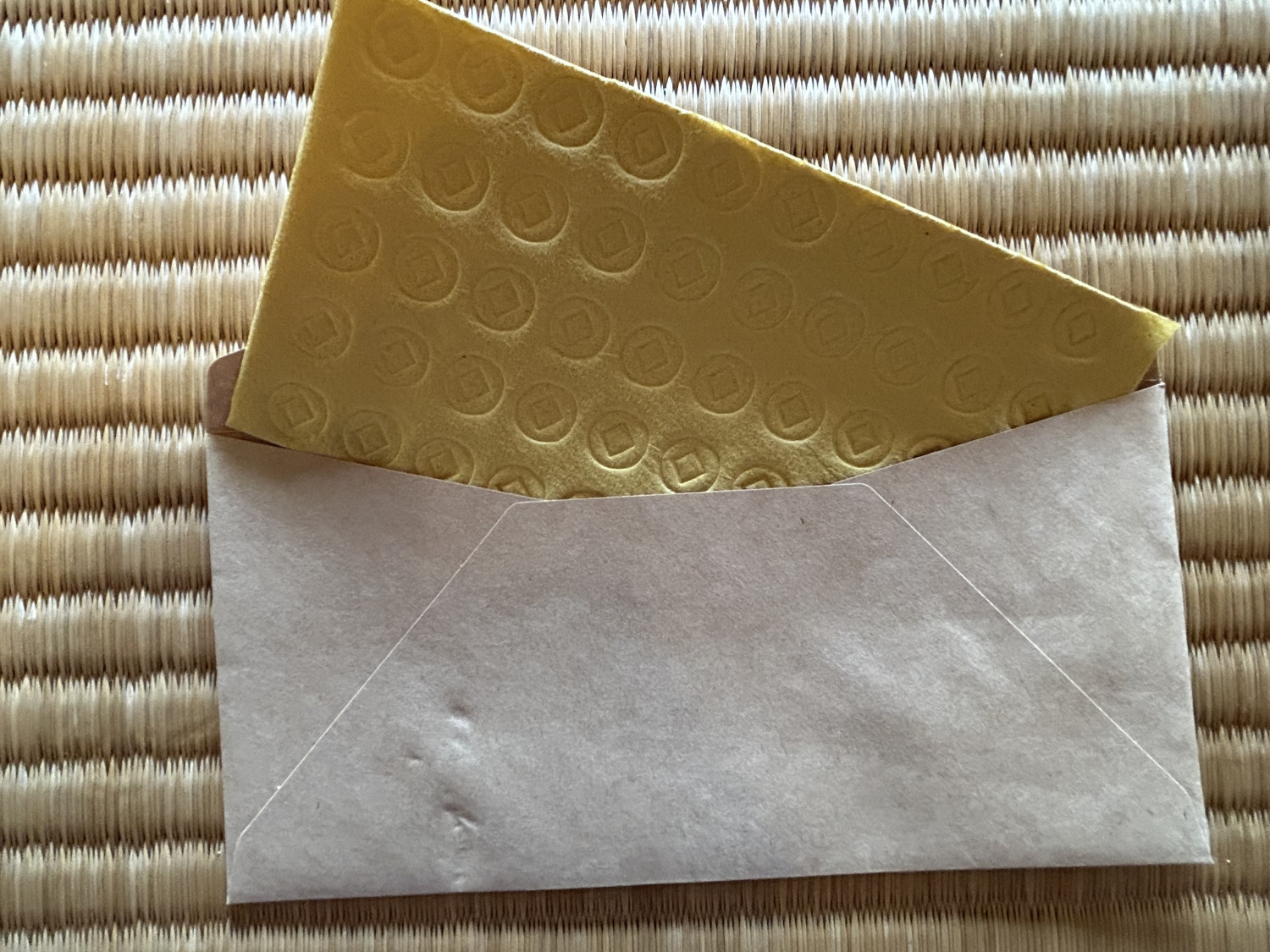 一つは、「ウチカビ (打紙)」と呼ばれる、沖縄では先祖供養のときに使われる冥銭、「あの世のお金」。「ご先祖様に送金してあげて下さい。」という言葉に思わずクスッ。もう一つは、「まち歩きの手引き」。こちらはツアーに参加した方のお楽しみ。まち歩きの心得やポイントが書かれています。