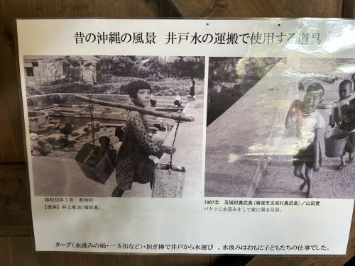 昔、集落の井戸まで水を汲みに行くのは子どもの仕事でした。実際に水の入った一斗缶を持ってみると、大人でもつらい!これを子どもがやっていたなんて、と体感することができます。