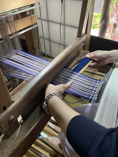 今回「機織体験」にチャレンジしました!ロートン織という琉球王朝時代の伝統的な織り方で、美しいミンサー模様に織って栞(しおり)を作ることができます。