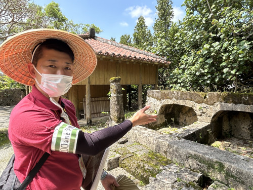 おきなわワールド内には、「琉球王国城下町」エリアがあります。幻想的な玉泉洞を抜けて、熱帯フルーツ園で果物ウォッチングをした後、城下町エリアに出ますが、次のエイサーショーの時間が気になる人は、この風情溢れるエリアをさーっと通り過ぎてしまうことも。通り過ぎてしまうのは、もったいない!このエリアには、見てほしい所がたくさんあるんです。ガイドツアー『100年前の沖縄めぐり』に参加すると、私たちが見逃してしまっていた「沖縄のおもしろさ」を受け取ることができます。