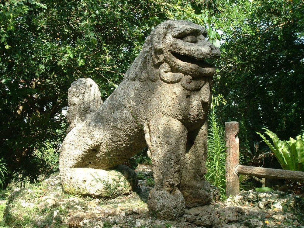 八重瀬岳を静かに見つめる、最大で最古の石獅子