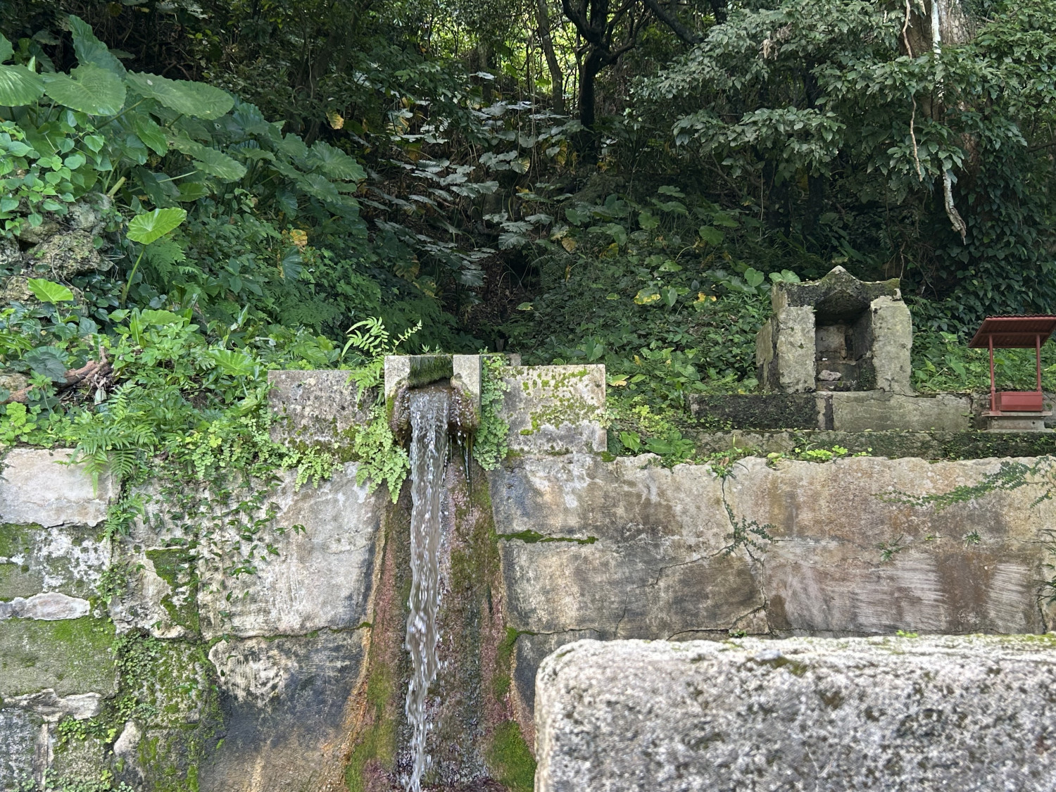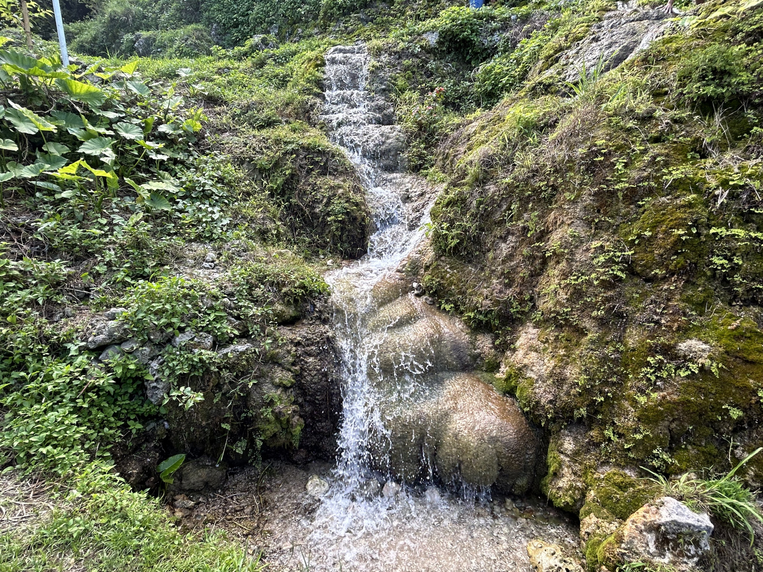 うっそうとした森の中抜けると、そこは豊かな水を湛えたオアシス。石畳の急な坂道を下っていくので、歩きやすい靴必須。
