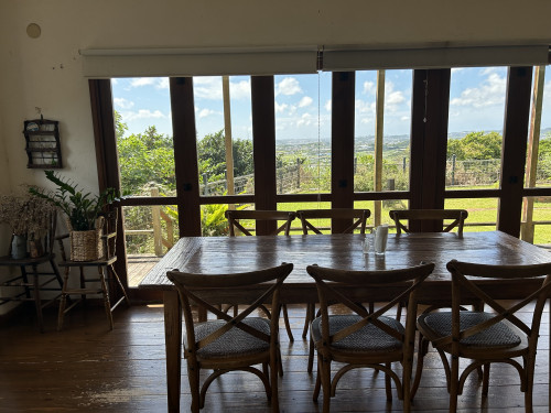 高台にあり、見晴らしの良い絶景カフェ。食事の後は、屋上から景色を堪能できる。