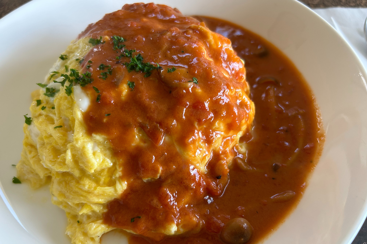 野菜たっぷりのスープや、ふわふわ卵のオムライスが絶品!