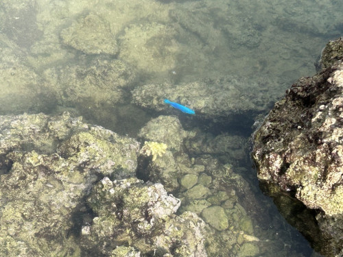 「手つかずの海岸」という感じで、足場は岩がゴロゴロとしているので、ケガをしないよう歩きやすい靴必須。