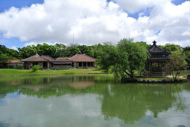 中国、日本、琉球のスタイルを取り入れた廻遊式庭園
