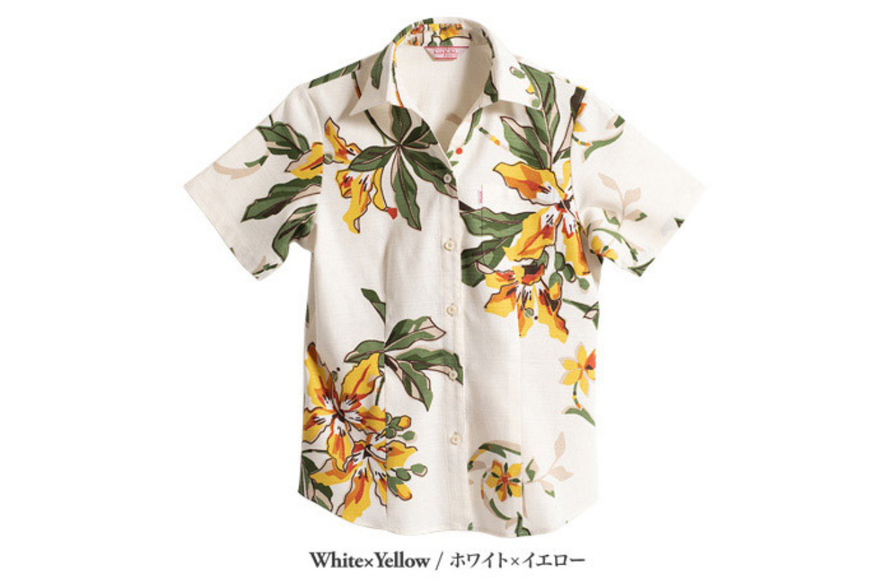 レディースでは、ブラウス素材で襟付きのかりゆしウェアが人気です。着回しがきくので、好みのボトムスを合わせてオシャレを楽しんで下さい。