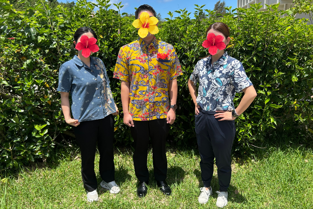 最近では、企業や大学生のサークルのユニフォームとして、かりゆしウェアを取り入れるところが増えてきています。涼しくて快適ですし、見た目も明るいので、チーム力を高めるのにぴったり!