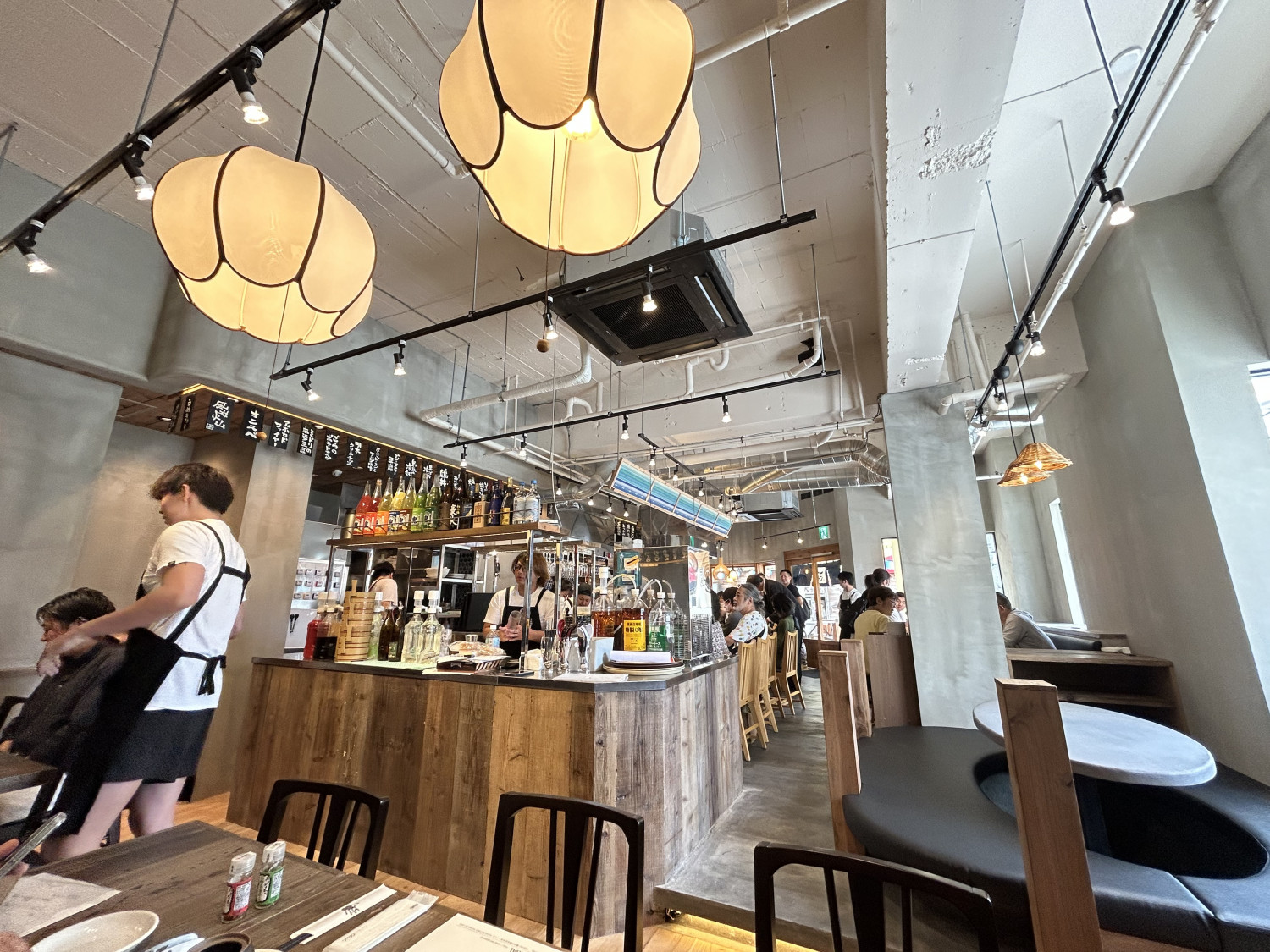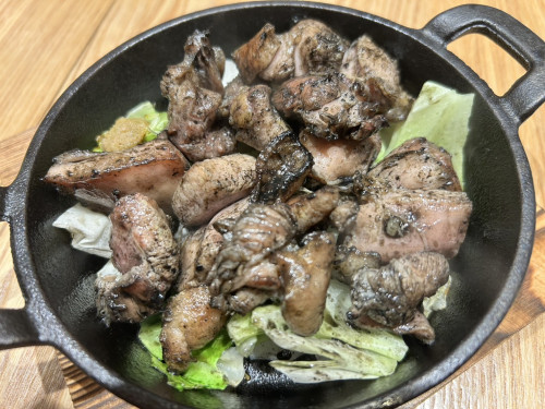 また、コリコリとした食感でお酒がすすむ「親鳥の皮ポン酢」の他、島らっきょうの巻き串といった「野菜巻き串」や沖縄唐辛子を使った緑色の「ミドリの麻婆豆腐」など、沖縄らしいメニューも揃います。ドリンクは定番のビールやハイボールを中心に、料理との相性抜群なラインナップ。焼き台を囲むように設けられた客席では、スタッフが乾杯を盛り上げ、楽しい空間を満喫できます。
