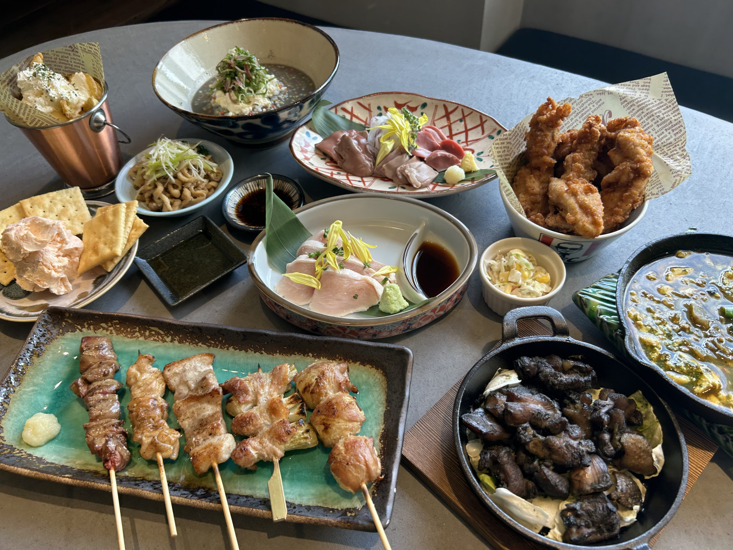 5月12日に那覇市久茂地にオープンした「焼鳥 ごう 久茂地店」。こちらの店舗はミンサー織のタペストリーといった沖縄らしさを取り入れたモダンでオシャレな内装のため、女子会やデートにもおすすめです。味わえるのは、宮崎県がルーツの“火柱焼き”を取り入れた豪快な焼鳥。親鳥のもも肉やせせりを強火の炭火で一気に焼き上げ、立ち上る炎と香ばしい香りが食欲をそそります。