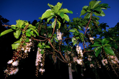 また、いかにも南国らしい花といえば「ハイビスカス」。沖縄のいたるところで見かけますが、その花は目を楽しませてくれるだけでなく、防風林の役割も果たしています。加えてブーゲンビリアも、南国ムード満点の花。といっても、赤紫の鮮やかな花のような部分は、実際は花ではなく、花を包む苞葉(ほうよう)です。そして夏の夜だけに花が咲き、朝には散ってしまう「サガリバナ」も、沖縄ならではの花のひとつ。西表島には川沿いに大規模な自生集落があり、開花期には船による観覧ツアーも行われています。