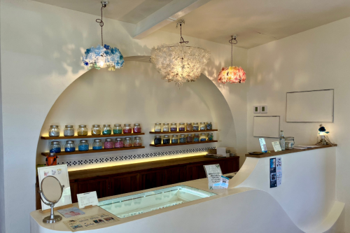 カウンターには色とりどりに分けられた海洋プラスチック片が瓶詰めされて並び、まるで美しいカラーストーンが並ぶ宝石店に入ったかのような気分になりました。