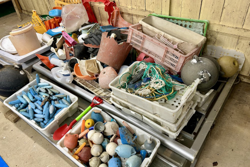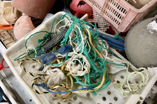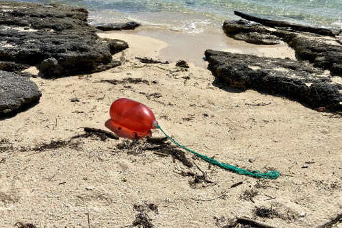 中には、中身が入ったままのペットボトルや未開封の缶詰、殺虫剤のスプレー缶なども。 漁業で使われるブイ(浮き)が流れ着いていたのも印象的でした。風に吹き飛ばされてしまった漁具(網やブイ)が流れ着いてくるそう。