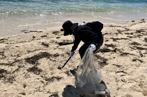 今日はゴミがとても少ない方なんですよ。夏は観光客の方がたくさんいらっしゃるので、自治体や地域のボランティアの方々がビーチを綺麗に保ってくれているんです。