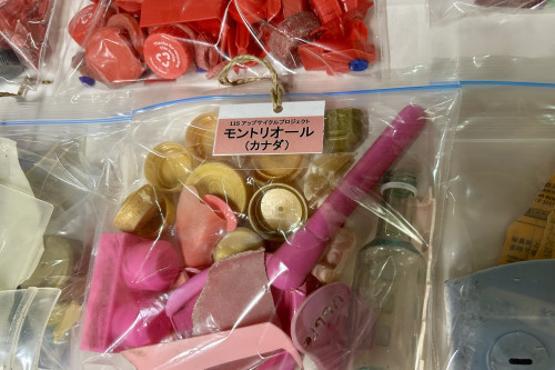 海外の寄港地で回収された海洋プラスチックも見せて頂きました。現在は沖縄を拠点に、日本・クロアチア・オーストラリア・カンボジア・パラオの5か国へと活動の場を広げているそうです。 中でも驚きなのは、カンボジアでは海洋プラスチックではなく、 「地雷プラスチック」のアップサイクルに取り組んでいるということ!