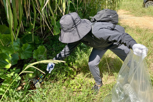 玉村さんの仰る通り、この日は30分ほどの作業でほとんどのゴミが拾えました。照りつける日差しの下、たった30分の作業でも汗だくに。UVケアの服を着ていても、肌がジリジリと焼けるような暑さでした。私たちが見ている美しい海は、地域の方々による清掃活動のおかげで守られていることを知りました。