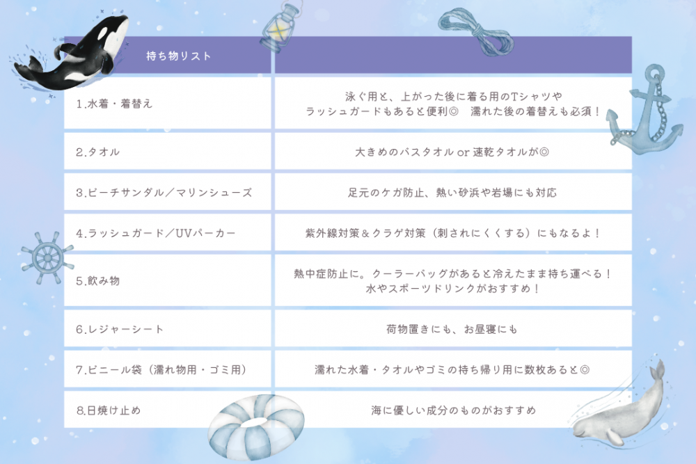 基本的に必要な持ち物をリストにまとめていますので、ぜひチェックしてみてくださいね!