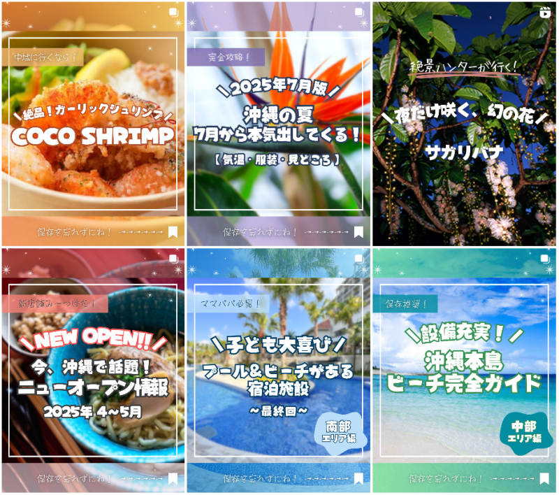 沖縄県の公式観光情報WEBサイト「おきなわ物語」では、公式Instagramを随時更新しています。いま行くべき最旬スポットや絶品グルメ情報など現地スタッフがセレクトしてお届け。思わず保存したくなるような、次の休みに沖縄に行きたくなるような情報発信を目指しています。