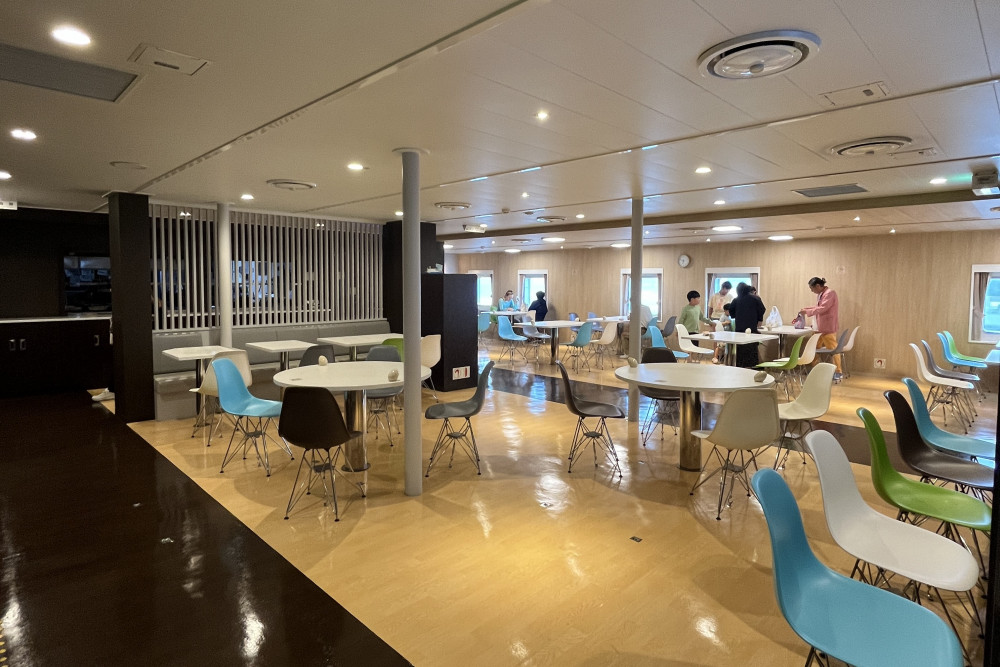 また、子連れのご家族も多く、船内を探検したりおしゃべりを楽しんだりと、和やかな雰囲気をあちこちで見かけて温かい気持ちになりました。「移動も旅の大切な一部なんだな」と改めて実感できる、素敵な体験でした。