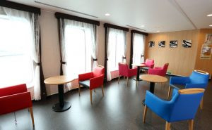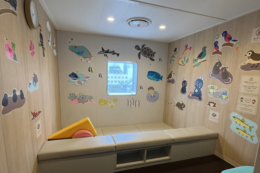船内はとても綺麗で広々としており、設備も充実しています。売店やレストランのほか、授乳室やシャワールームまであり、とても驚きました。
