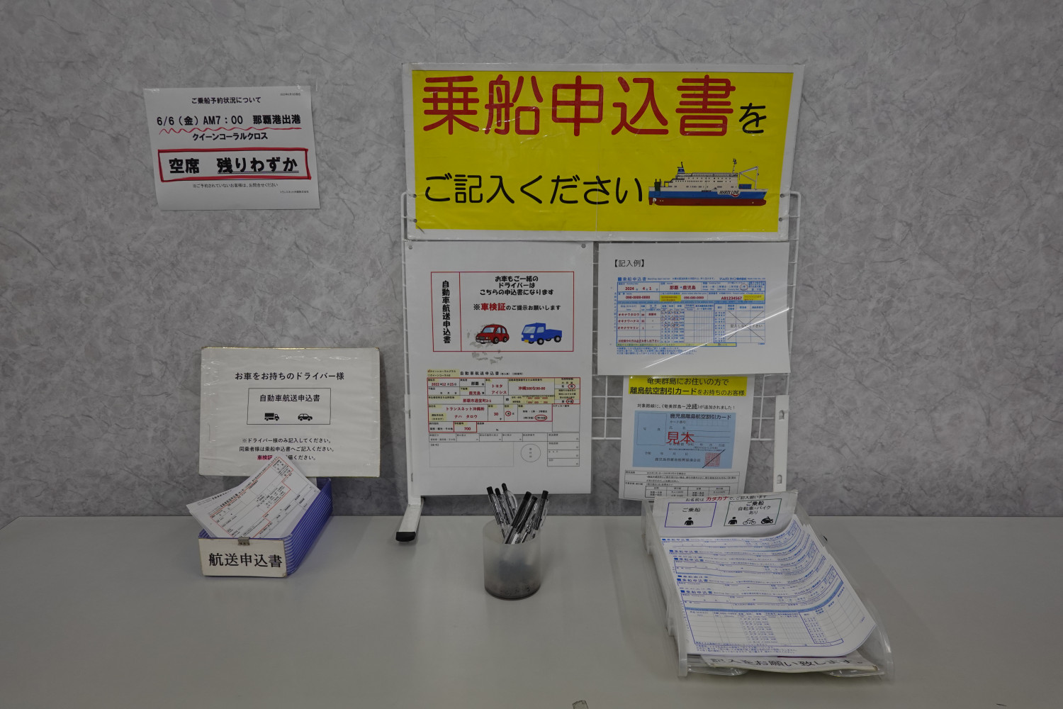 16:30頃、窓口で乗船申込書を記入して、乗船券を購入!