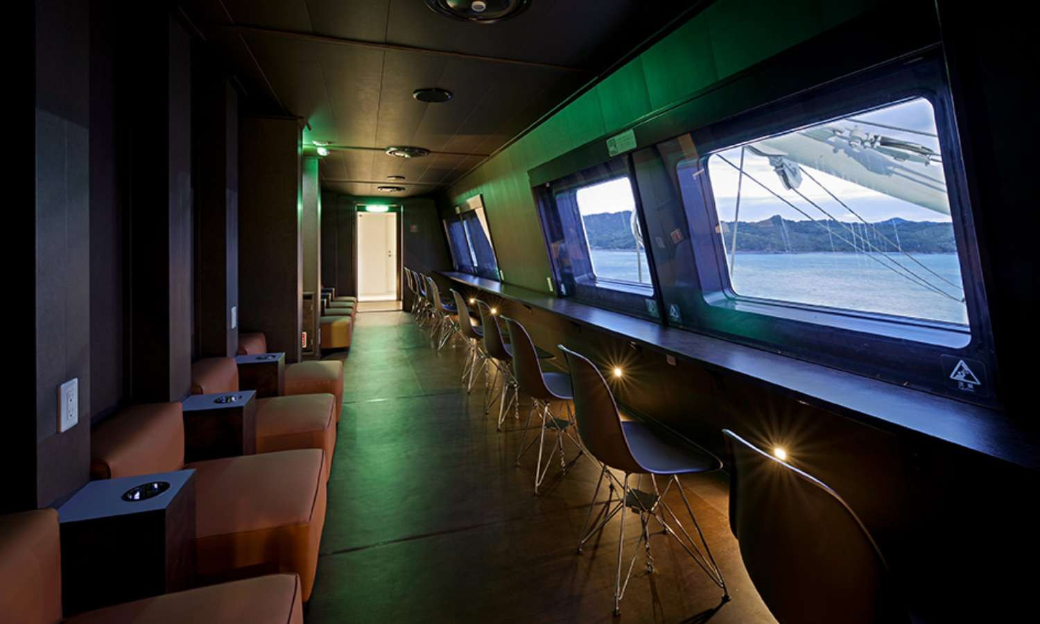 フェリーの船内では、軽食やお飲み物を自由に楽しむことができます。お好きなドリンクを片手に、美しい海を眺めながら過ごす時間は、まさに非日常。運転の必要がないため、お酒を楽しみたい方にもぴったりです。