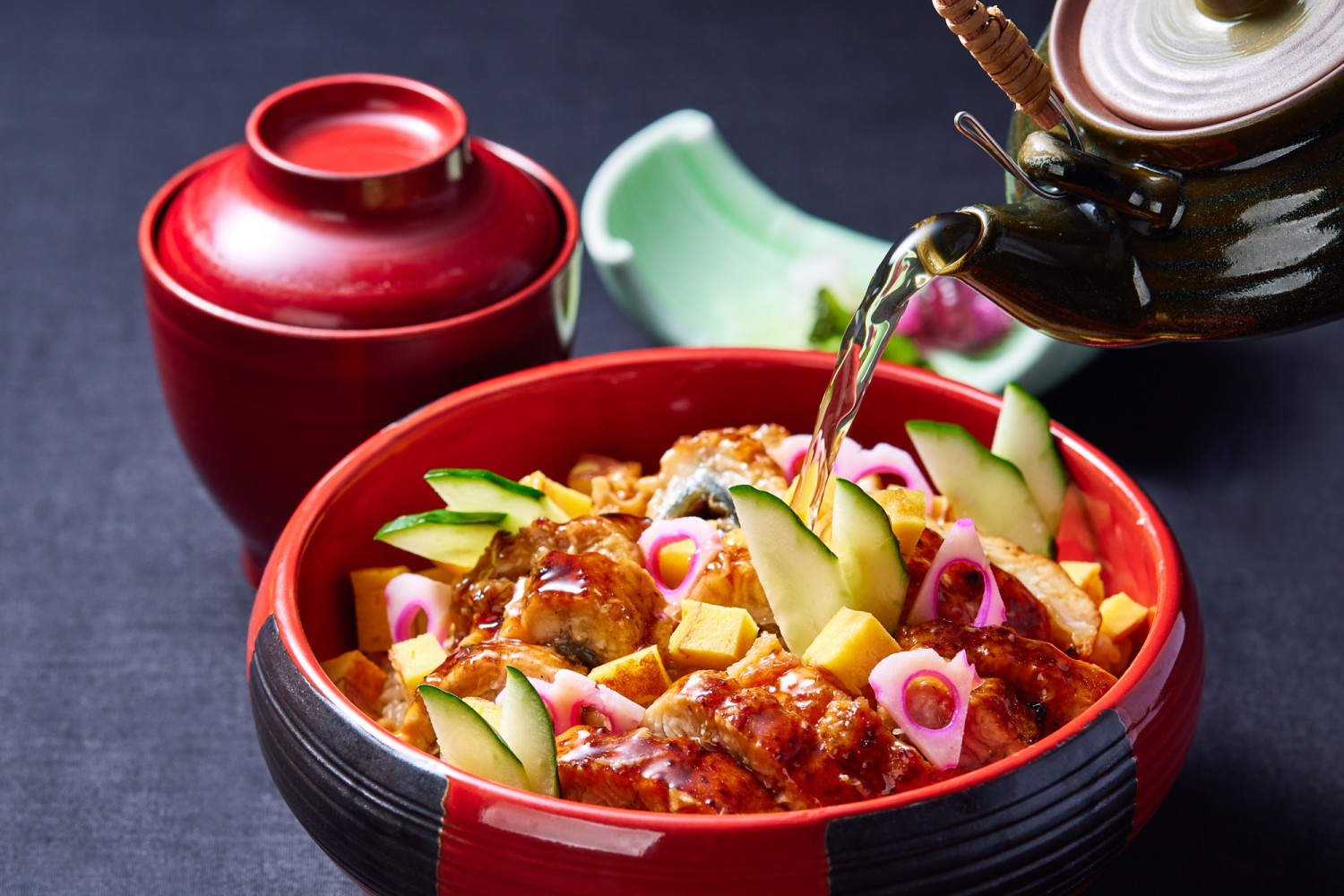 オープン日から期間限定メニューとして登場するのが、お好みのおだしで味わう”ひつまぶし”。出汁ソムリエの資格をもつ統括総料理長 砂川直樹が厳選した『温』と『冷』2種類のおだしをお好みで。たっぷりかければ味わいがさらに引き立ちます。