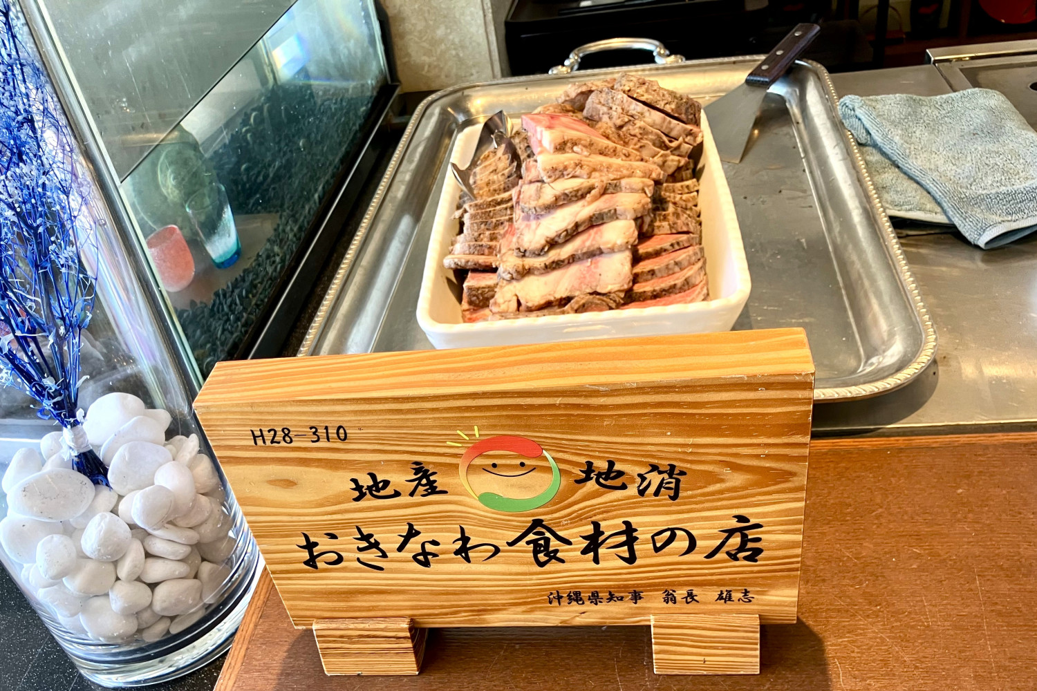 シェフが目の前で焼き上げる沖縄県産黒毛和牛ステーキとイセエビの鉄板焼きや期間限定で提供する選べるおだしの"ひつまぶし”、さんぴん茶出汁で食べる県産野菜しゃぶしゃぶ等、出汁ソムリエ/ 野菜ソムリエの資格を持つ統括総料理長こだわりの料理が並びます。