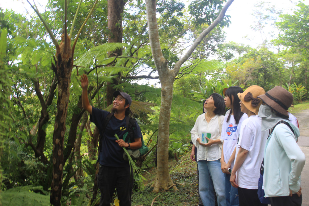 ゆったり歩きながら、ガイドが植物や小動物の説明を丁寧にご紹介。
