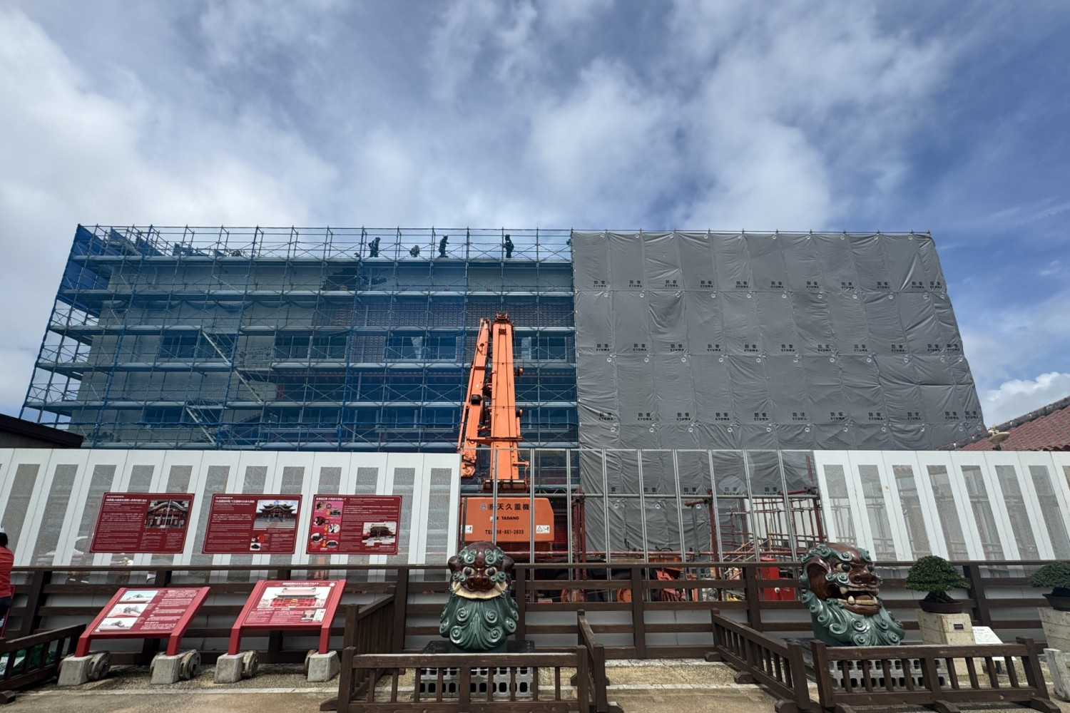 首里城正殿の復元工事は2026年秋の完成を目指し、内部塗装や廊下、防火設備の整備が進行中。2025年7月から素屋根撤去を開始し、10月末には約6年ぶりに正殿が姿を現す予定です。有料区域内の「首里城復興展示室」や「世誇殿」では、写真・映像・展示物で復元の歩みをご紹介しています。