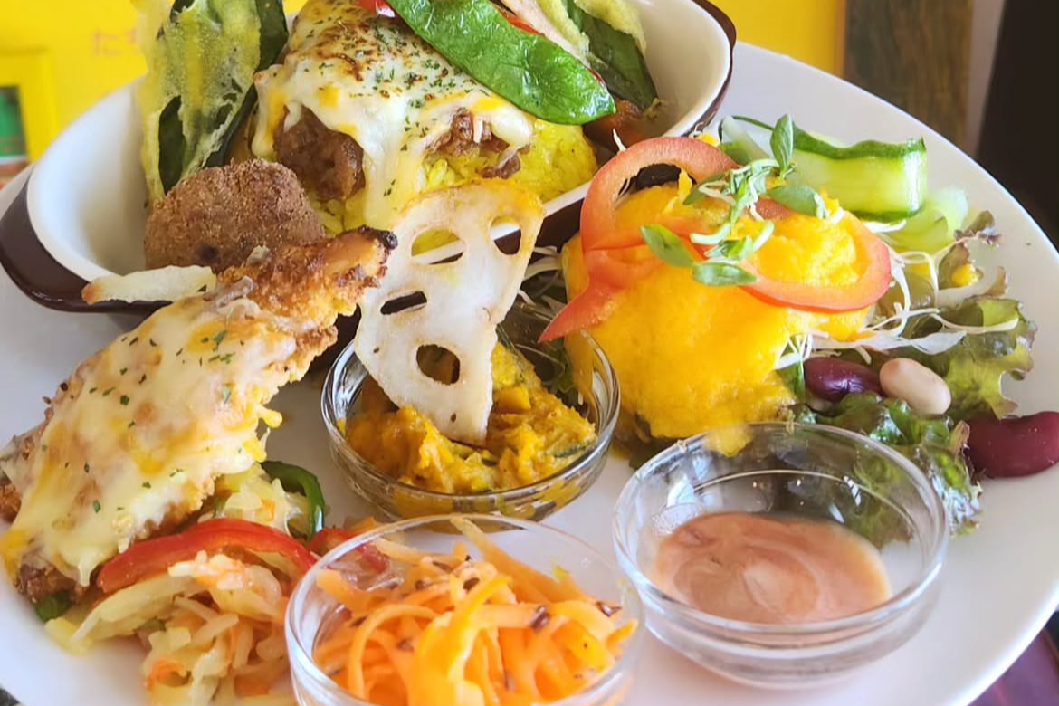 『あんじんもこ』は赤嶺駅から徒歩6分のところにあるスパイスカレーのお店。店主がスパイスから丁寧に仕上げるカレーは、スパイスの刺激的なイメージとは異なり心地よい旨味が広がると評判です。小麦、卵、バナナを使用せず持ち込んでいないため、アレルギーがある方でも安心して美味しく食べられます。ほかにも、動物性食品を一切使用しないヴィーガンメニューや野菜たっぷりのプレート、焼き菓子などがあります。