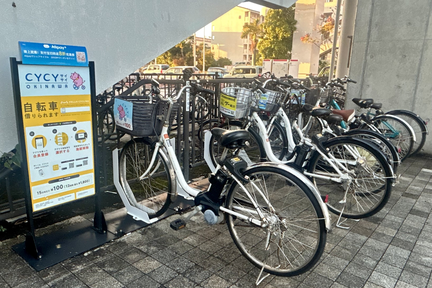 赤嶺駅には「HELLO CYCLING」などのステーションがあり、アプリで簡単に借りられます。