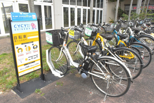 小禄駅には「HELLO CYCLING」などのポートが設置されています。電動アシスト自転車を利用できるため、快適にサイクリングが楽しめます。また、貸し出し場所以外でも返却可能で、周辺を散策した後に別のポートで返せるのも便利です♪