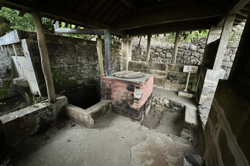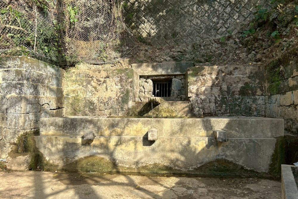 昭和10年にはコンクリートを用いた改修が行われ、水を段階的に利用できる仕組みが整えられました。飲用水として使われた後、洗濯用水、農具や農作物を洗う水、馬の水浴びを行う「ウマアミシ」へと流れ、最終的には灌漑用水として再利用されていたとされています。限られた水を無駄なく活用する、当時の人々の知恵が感じられます。