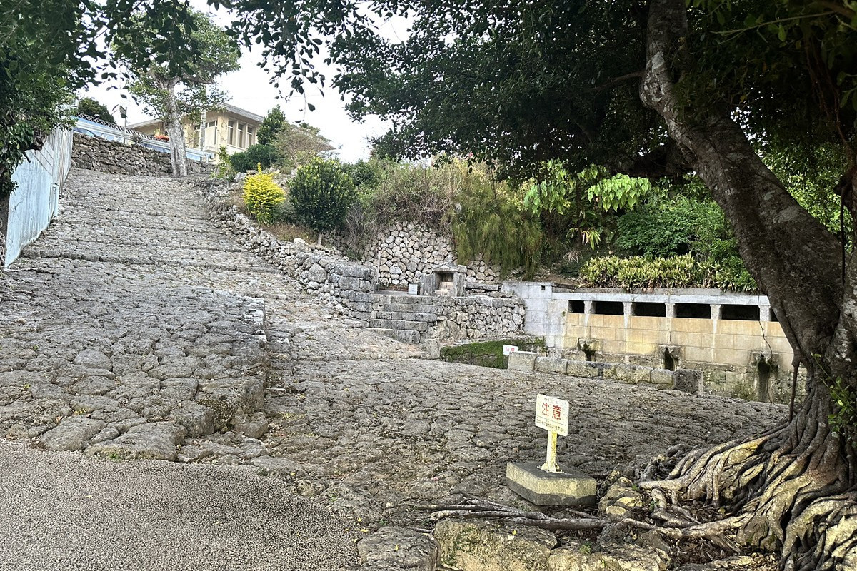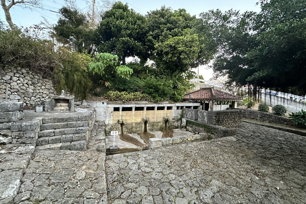 施設は、男性用の水場「イキガガー」、女性用の「イナグガー」をはじめ、広場、拝所、共同風呂、石畳(カービラ)などで構成されています。かつては飲み水や洗濯、野菜洗い、水浴びなど、集落の暮らしを支える生活用水として利用されてきました。