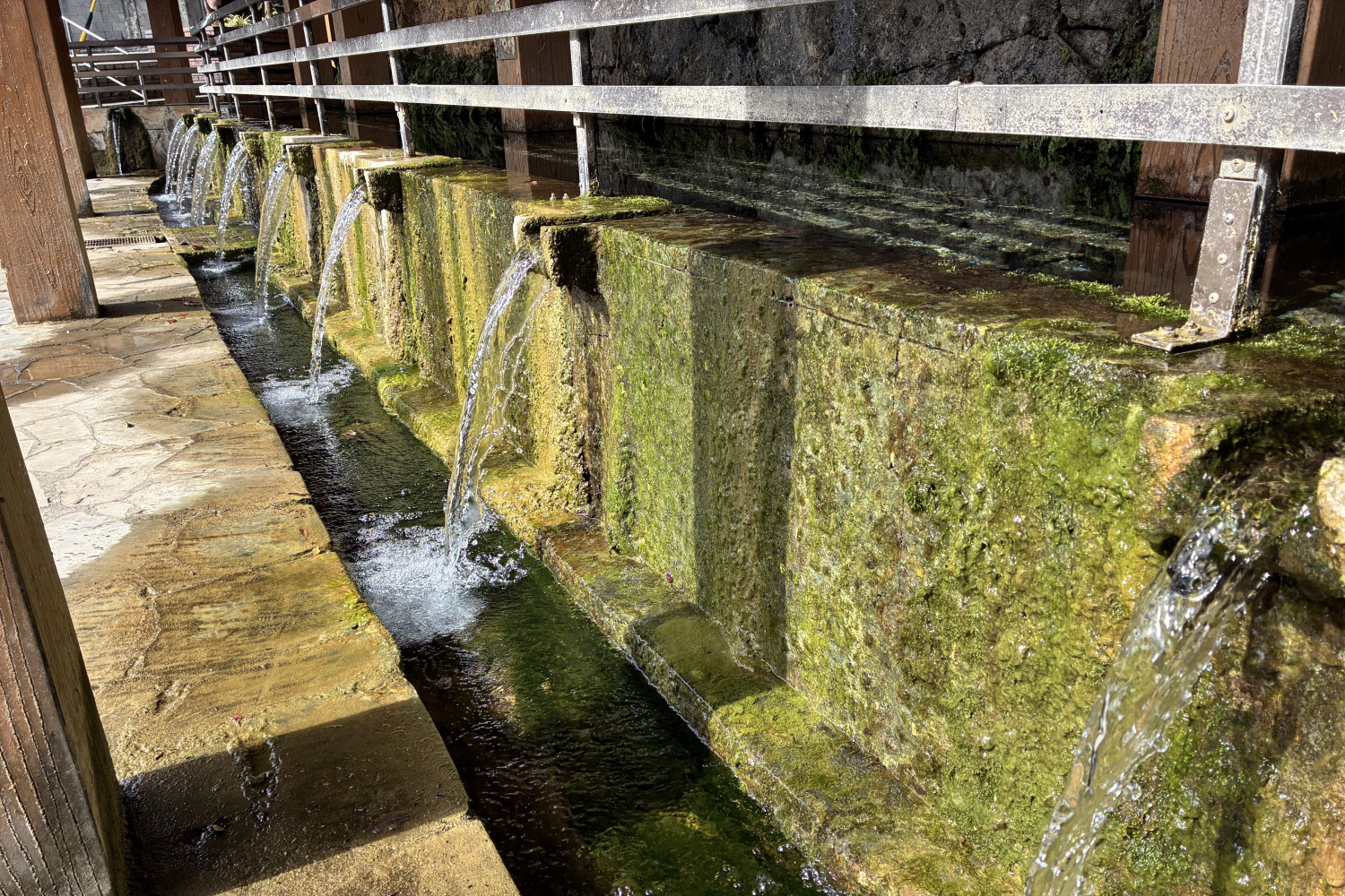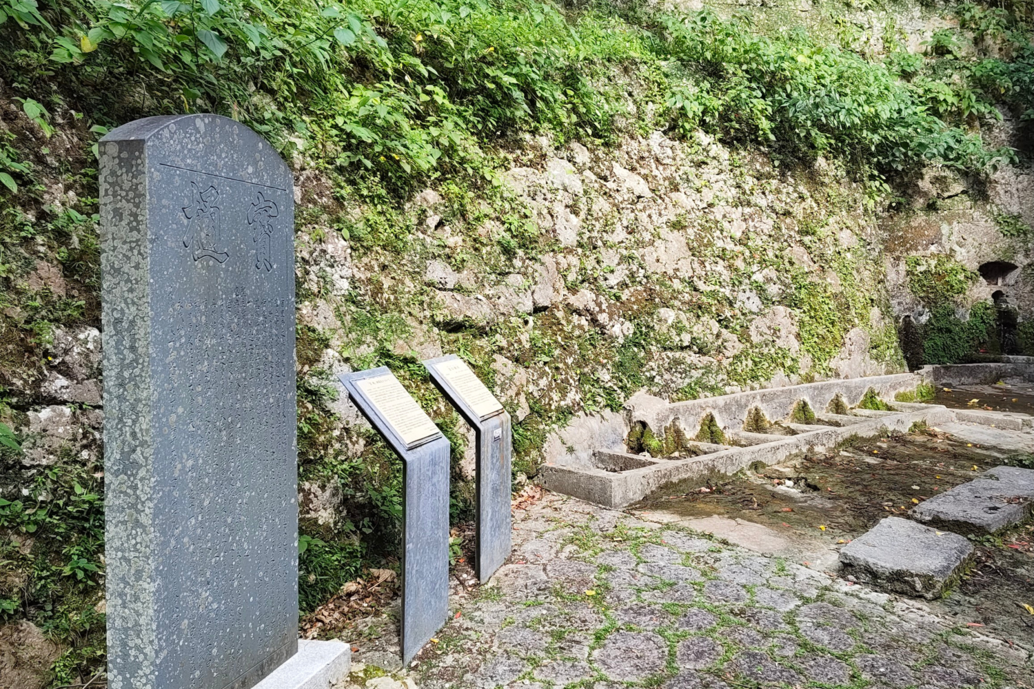 水が流れる三本の樋口には、布積みとあいかた積みの石積みが用いられ、その上には水の神様を祀る香炉が据えられています。地域の人々によって大切に守られてきた井泉の佇まいに触れながら、静かな時間を過ごしてみてはいかがでしょうか。