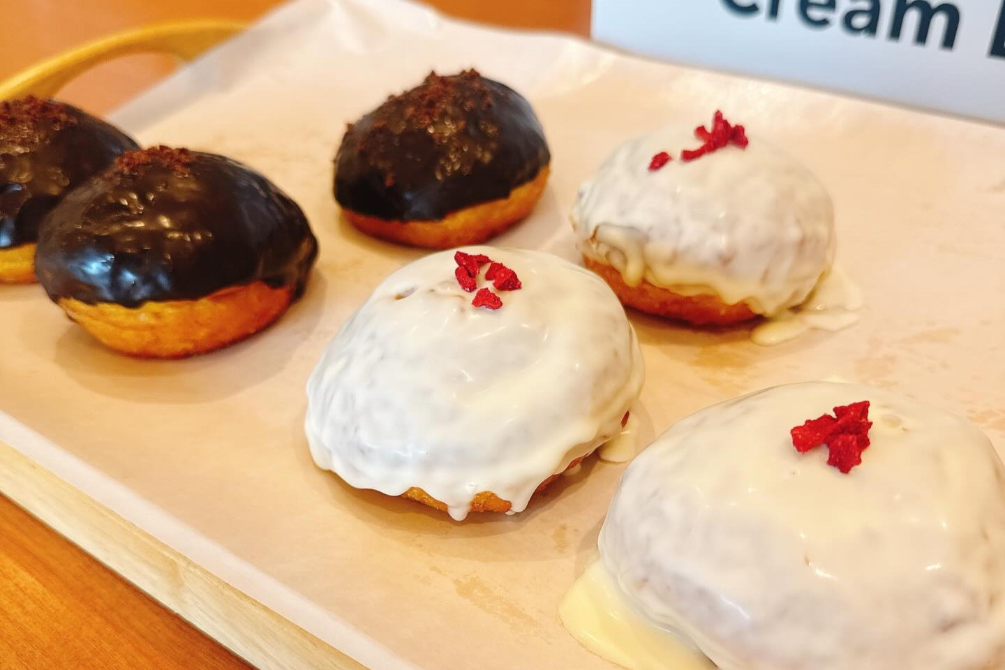 店名の通り、自慢のクリームは、北海道産の新鮮な生乳100%の生クリームを使用しており、濃厚なのに軽い口溶けで、ドーナツ生地と合わせても最後まで美味しくお召し上がり頂けます。パティシエが何百回と試作を重ね完成した、拘りのクリームとなっております。