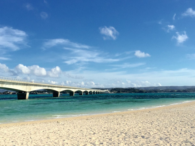 古宇利島の玄関口に位置する古宇利ビーチは、白砂とエメラルドグリーンの海が美しい遠浅で人気のビーチです。古宇利大橋を挟んで東西に分かれ、メインとなる西側には約300mにわたる開放的な砂浜が広がっています。バナナボートなどのマリンアクティビティも充実しており、透明度の高い海で存分に遊泳が楽しめます。