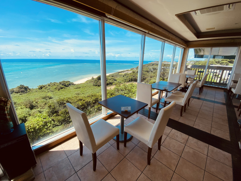 沖縄本島南部・南城市の高台に佇む「Cafeやぶさち」。エメラルドグリーンに輝く海を見渡すことができる絶景カフェで、店内やテラス席からは、刻々と移ろう海の表情を堪能できます。料理はフレンチやイタリアンをベースに、島野菜や地元産のはちみつなど、南城市ならではの食材をふんだんに取り入れたメニューが揃います。