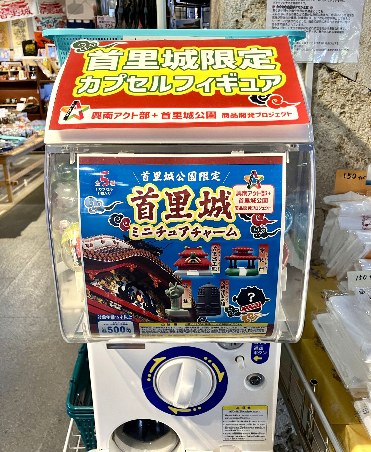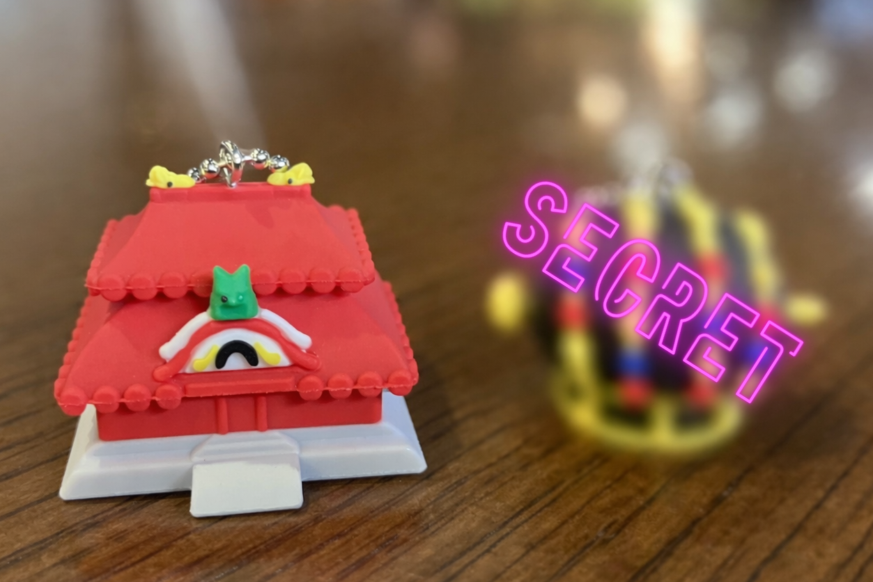 ①首里城正殿②守礼門③万国津梁の鐘④龍柱⑤シークレットの5種類。何が出るかはお楽しみです。