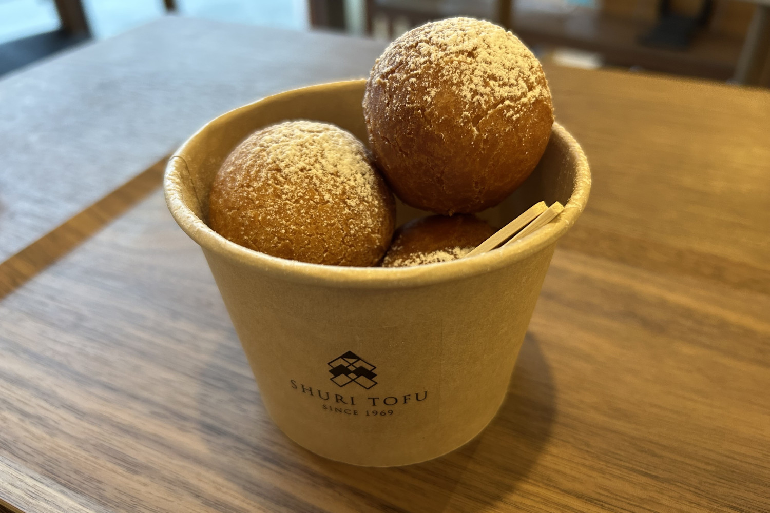 「もちもち首里とうふあんだーぎー」は、外はカリッと香ばしく、中はモチモチで新食感の軽やかなあんだーぎー。「首里とうふまんじゅう」は生地に豆乳を使い、ごぼうや人参、干し椎茸、国産豚肉を使用した〝おからあん″を包んだ一品。生地のやさしい甘さとマッチしていて、おやつにも食事にもぴったりです。