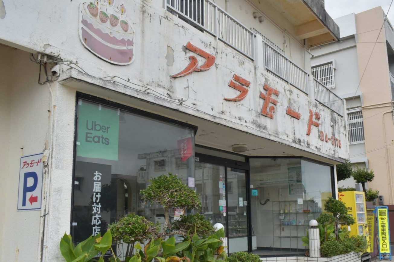 創業1973年の老舗洋菓子店『アラモード』。長年この場所で愛されてきたことが伝わる、味わい深いレトロな佇まいが目を引きます。